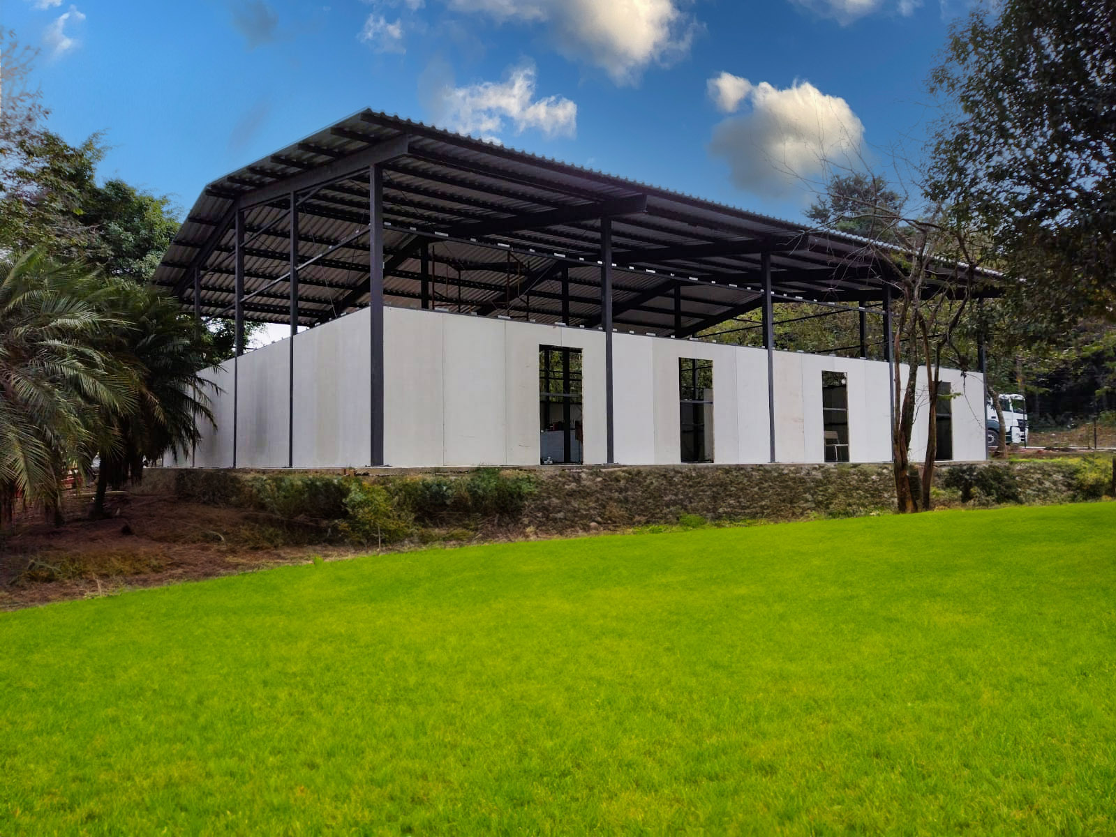 Construção em fibrocimento, lâminas de pinus e sarrafeado de pinus. Uso em fachadas, divisórias, tetos e muito mais. Projetado para construções seguras e de qualidade.